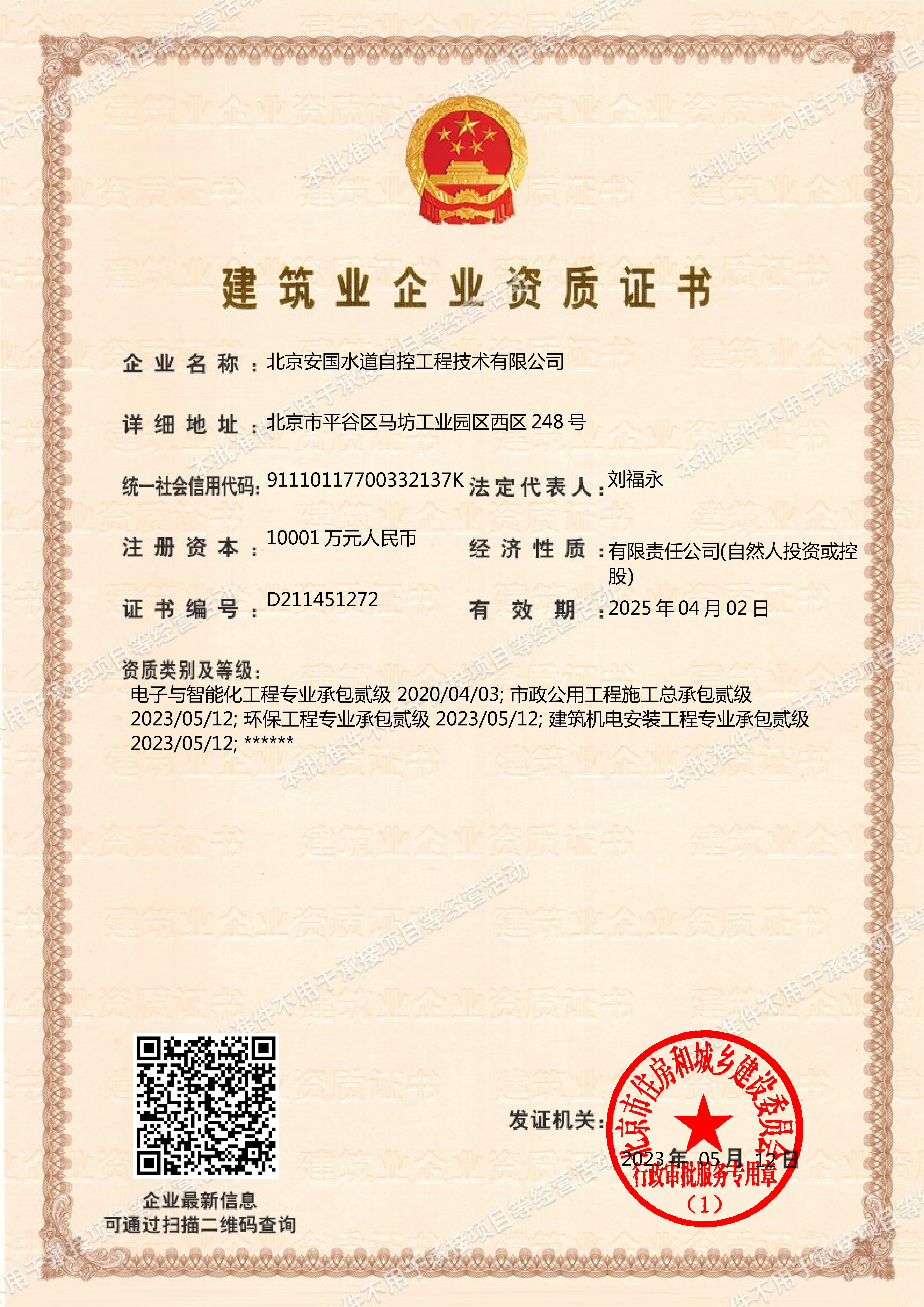 • 北京安國水道自控工程技術有限公司入駐中國給水排水品牌委員會